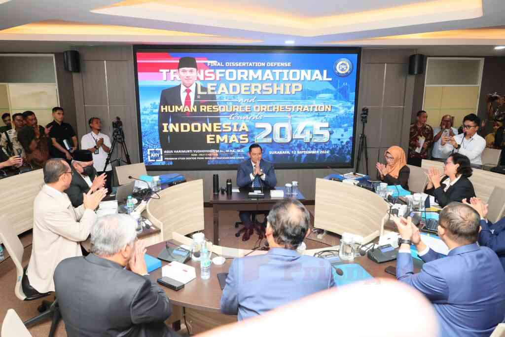 Dalam disertasinya, AHY mengangkat tema kepemimpinan transformasional dan pengelolaan sumber daya manusia yang menjadi kunci menuju Indonesia Emas 2045.