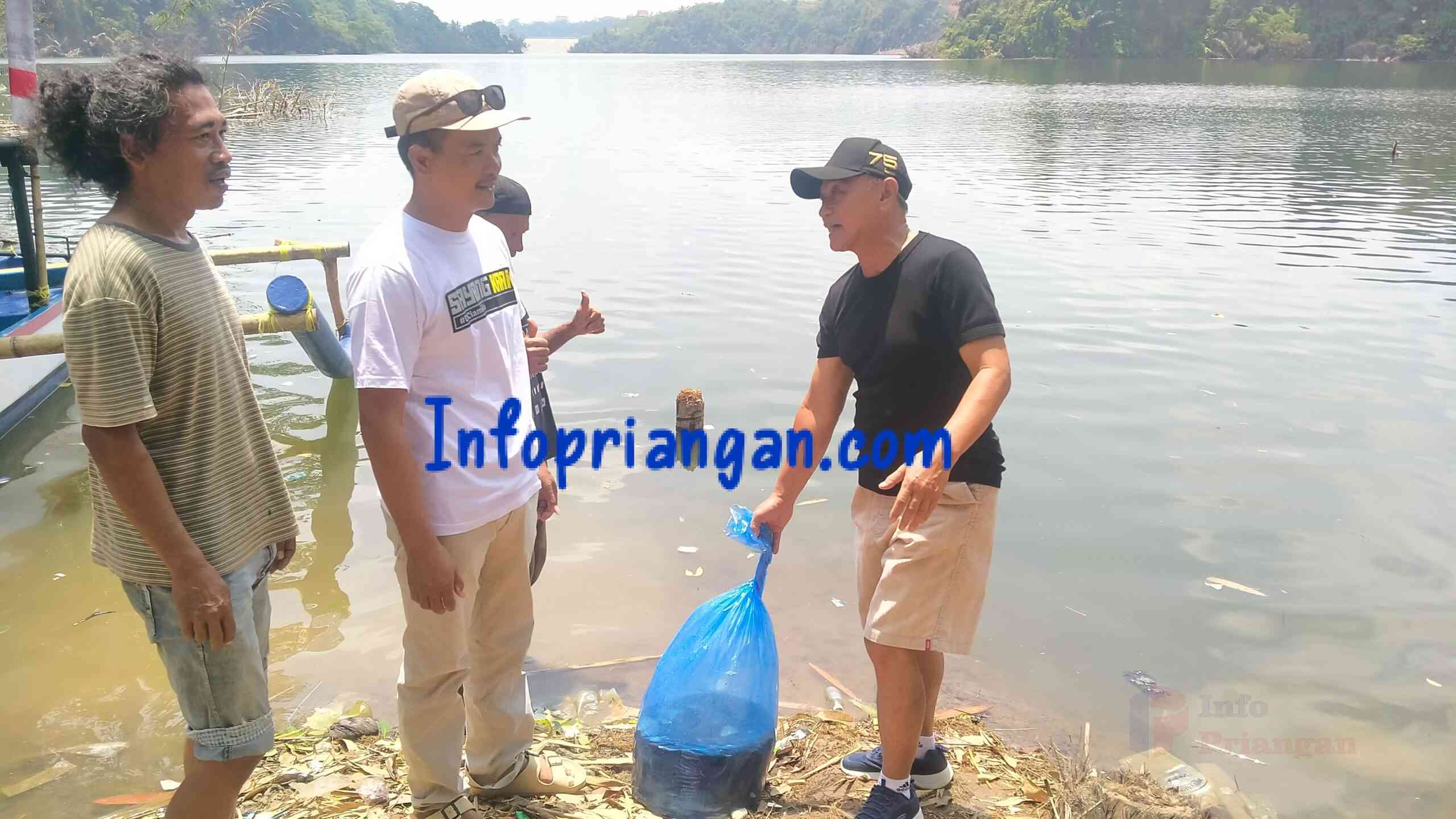 infopriangan.com, BERITA CIAMIS. Anggota DPRD Kabupaten Ciamis Komisi D, Asep Rahmat dari Partai Amanat Nasional (PAN) tebar ribuan benih ikan mujair (100kg) jenis ikan wanayasa di perairan Leuwi Keris, dengan tujuan meningkatkan populasi ikan dan menjaga keseimbangan ekosistem.