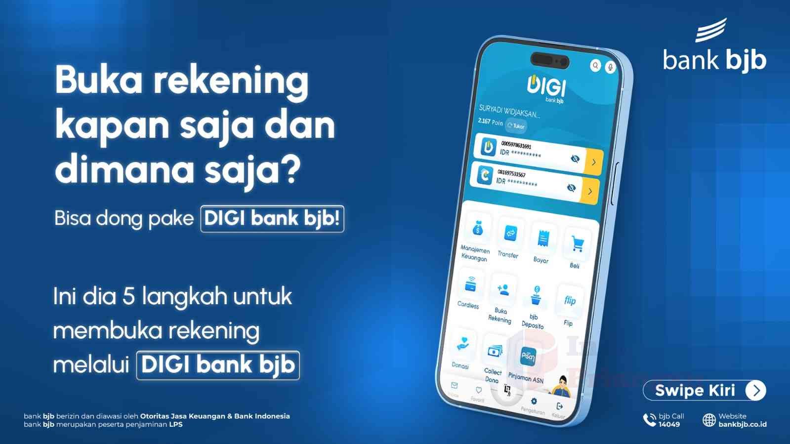 Untuk informasi lebih lanjut mengenai pembukaan rekening melalui DIGI bank bjb, masyarakat dapat mengunjungi laman resmi bank bjb atau menghubungi layanan pelanggan. (Redaksi/infopriangan.com)