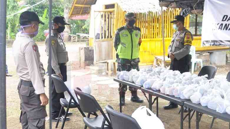 Polri dan TNI Bagikan Makan Gratis di Banjar