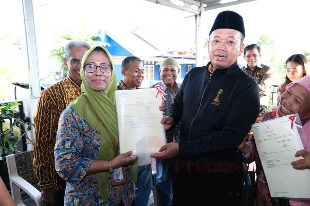 infopriangan.com, BERITA NASIONAL. Menteri Agraria dan Tata Ruang/Kepala Badan Pertanahan Nasional (ATR/BPN), Nusron Wahid, melakukan penyerahan 44 sertifikat tanah hasil program Pendaftaran Tanah Sistematis Lengkap (PTSL) kepada warga Balikpapan. Penyerahan dilakukan langsung secara door to door di Kelurahan Manggar, Kecamatan Balikpapan Timur. Sabtu, (14/12/2024).