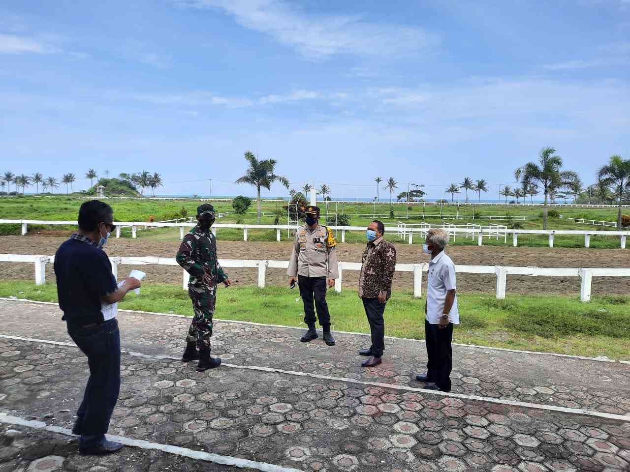 infopriangan.com, BERITA PANGANDARAN. Jelang Babak Kualifikasi Porprov Pacuan Kuda Bupati Pangandaran H. Jeje Wiradinata, Kapolres Ciamis AKBP Hendria Lesmana, S.I.K., M.Si., dan Dandim 0613/Ciamis Letkol Czi Dadan Ramdani, S.Sos., M.A.P melakukan pengecekan venue Pacuan Kuda.