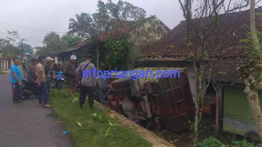 infopriangan.com, BERITA TASIKMALAYA. Sebuah mobil truk terguling masuk halaman rumah warga kemudian terbalik di Jalan Tawangbanteng, Kampung Warungjajar, Desa Tawangbanteng, Kecamatan Sukaresik, Kabupaten Tasikmalaya, Jawa Barat. Rabu, (19/10/2022) dini hari.