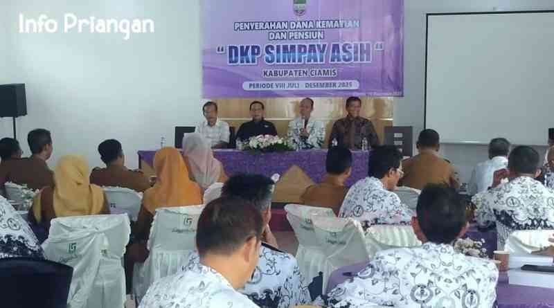 infopriangan.com, BERITA CIAMIS. Pengurus Dana Kematian dan Pensiunan (DKP) Simpay Asih Kabupaten Ciamis menyalurkan santunan kepada Aparatur Sipil Negara (ASN) guru yang memasuki masa purna bakti serta kepada keluarga ASN guru yang meninggal dunia. Penyerahan santunan tersebut dilaksanakan pada periode VII Juli–Desember 2025 dan berlangsung di Rest Area Pamalayan, Kabupaten Ciamis. Senin, (15/12/2025).