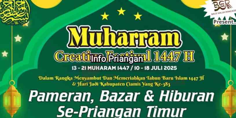 infopriangan.com, BERITA CIAMIS. Muharram Creative Festival 1447 H akan menjadi perhelatan perdana di Kabupaten Ciamis yang diselenggarakan dalam rangka menyambut tahun baru Islam. Acara ini dijadwalkan berlangsung selama sembilan hari, mulai tanggal 10 hingga 18 Juli 2025, di kawasan Islamic Center Ciamis. Mengusung semangat kreativitas dan syiar Islam, festival ini akan menghadirkan berbagai kegiatan pameran, bazar, hiburan, edukasi, hingga aksi sosial.