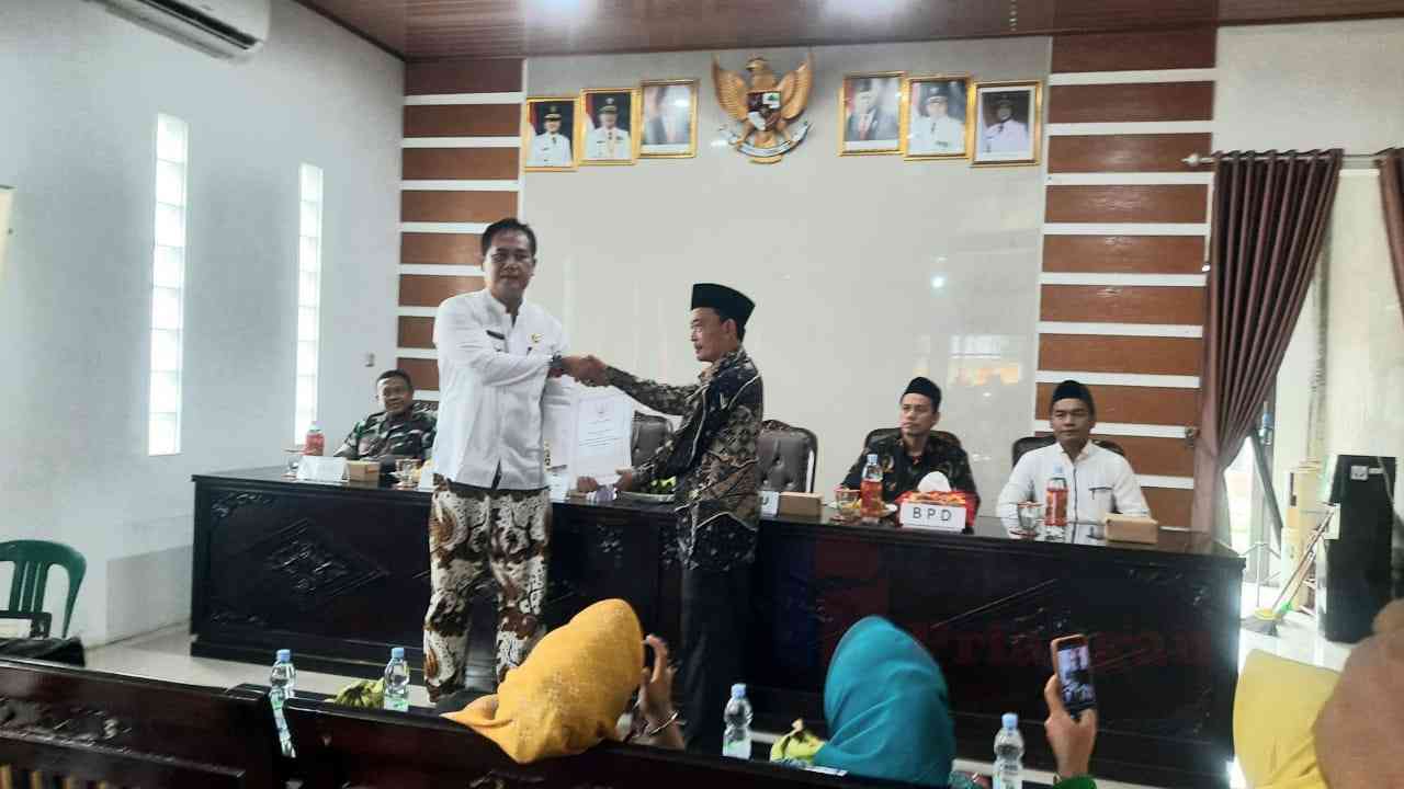 Pemerintah Desa Balad gelar sertijab Kuwu Balad dari H. Supriatin ke H. Yoyo Subagyo priode tahun 2023 – 2029 dilaksanakan di Desa Balad. Kamis (4//1/2024).
