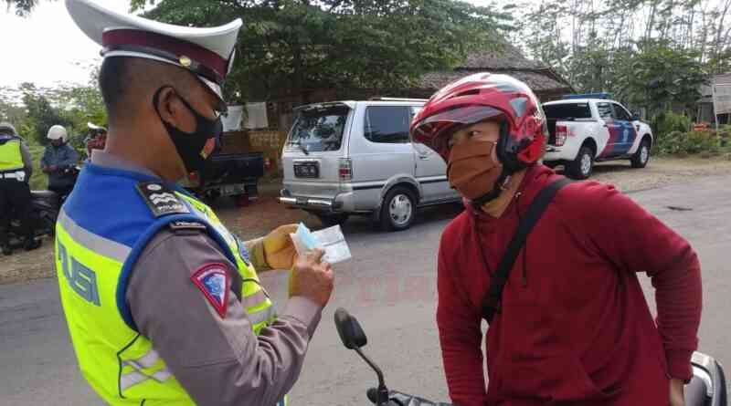 Selama pelaksanaan Operasi Lodaya 2020, Jajara personel Satlantas Polres Ciamis juga melaksanakan bakti sosial. Bagikan masker gratis kepada para pengendara.