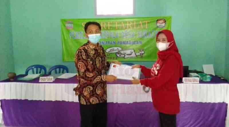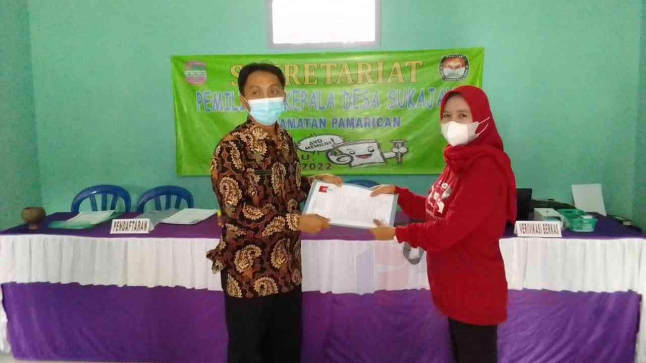 Setibanya di Sekretariat Panitia Pilkades Sukajaya, Herdis Siswanto, S.Ip., bersama tim suksesnya langsung menyerahkan berkas pendaftaran kepada panitia.