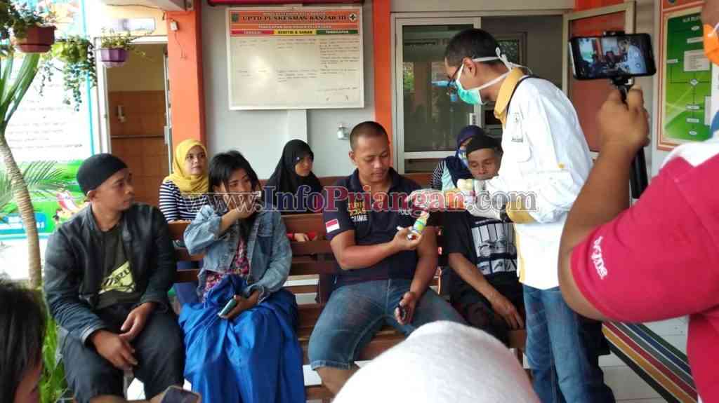 infopriangan.com, BERITA BANJAR. Sebagai Bentuk kepeduli akan kejadian yang luar biasa di indonesia, khususnya di Kota Banjar, HIPMI Kota Banjar mengadakan edukasi tentang pencegahan Covid 19. Hipmi sebar Sanitizer kepada masyarakat yang berada di Puskesmas di Kota Banjar dengan di dampingi oleh Dokter dan Perawat Puskesmas.
