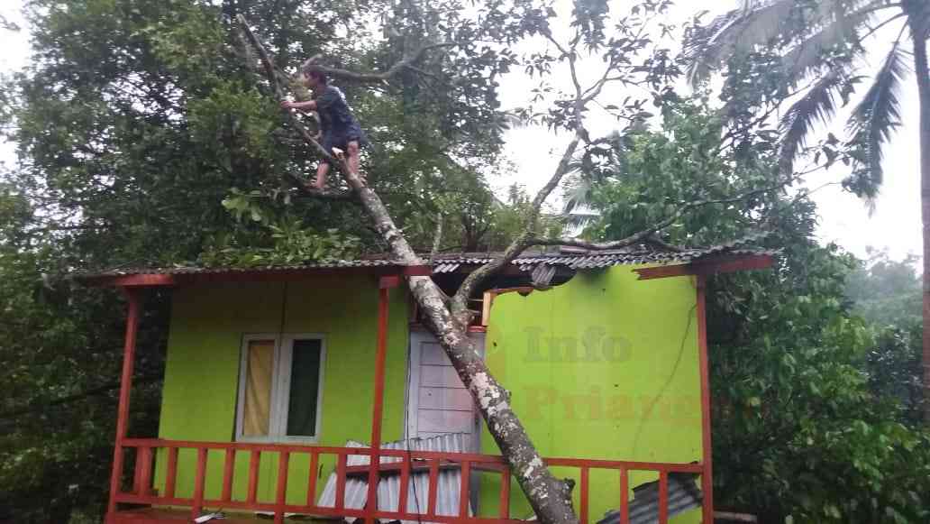 Sedangkan, di Kecamatan Sadananya, ada satu rumah warga yang tertimpa pohon, dan di Kecamatan Sindangkasih, ada satu pohon yang roboh, menutupi Jalan Nasional.