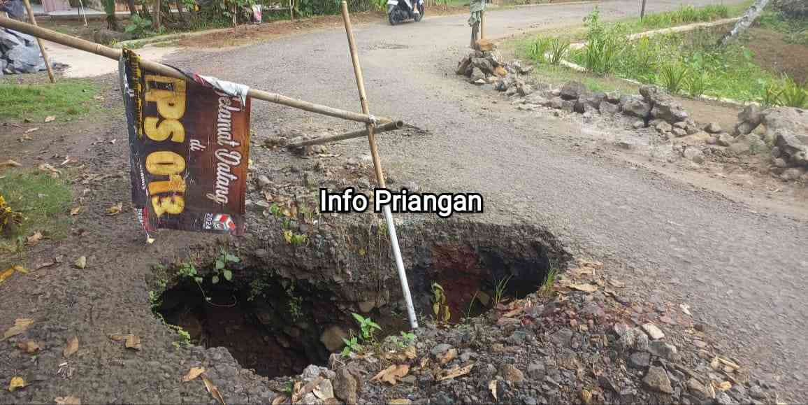 infopriangan.com, BERITA CIAMIS. Kondisi jalan desa di Dusun Kiarapayung, Desa Puloerang, Kecamatan Lakbok, Kabupaten Ciamis, Jawa Barat, mengalami kerusakan parah akibat gorong-gorong yang amblas. Kerusakan tersebut membuat akses jalan nyaris terputus dan berdampak langsung pada aktivitas masyarakat setempat.