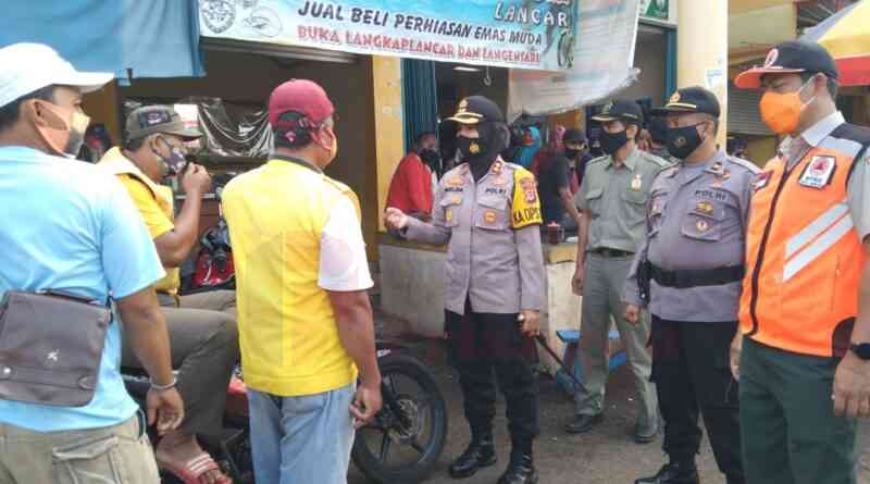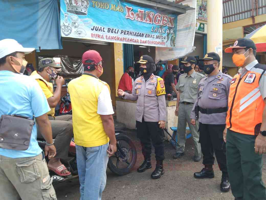 infopriangan.com, BERITA BANJAR. Kepala Kepolisian Resor Banjar, AKBP Melda Yanny, S.I.K., M.H., mendatangi Pasar Langensari, sampaikan Protokol Kesehatan kepada para Juru Parkir.
