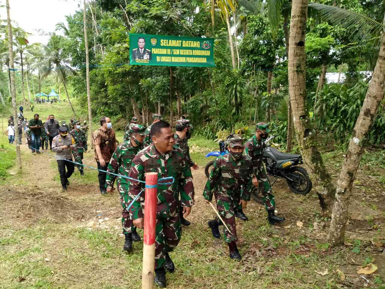 Tinjau lokasi rencana pembangunan Kodim 0625 Pangandaran, di Dusun Sidahurip, Desa Cintakarya, Kecamatan Parigi, Kabupaten Pangandaran, Jawa Barat, Kamis (24/12/20).