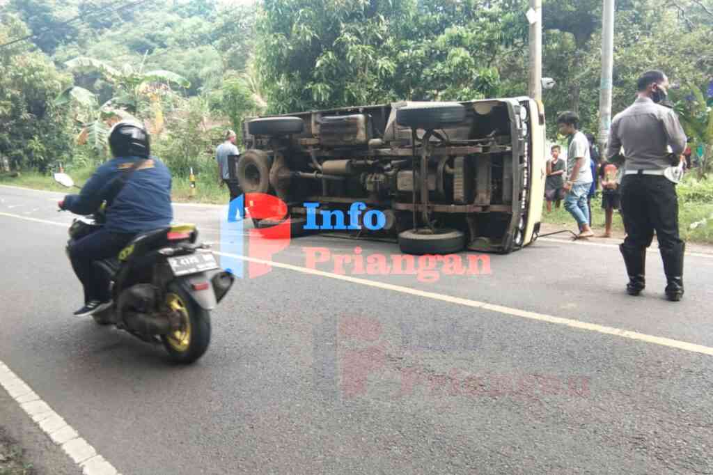 infopriangan.com, BERITA CIAMIS. Sebuah mobil Box Mitsubishi, bernomor polisi Z 8864 YC, yang melaju dari arah Banjar ke arah Banjarsari, terguling di Jalan Raya Pamarican – Banjarsari, tepatnya di Dusun Sukamaju, RT 19, RW 05, Desa Sukajadi, Kecamatan Pamarican, Kabupaten Ciamis, Jawa Barat, sekitar pukul 09.30 WIB. Senin, (23/11/22).