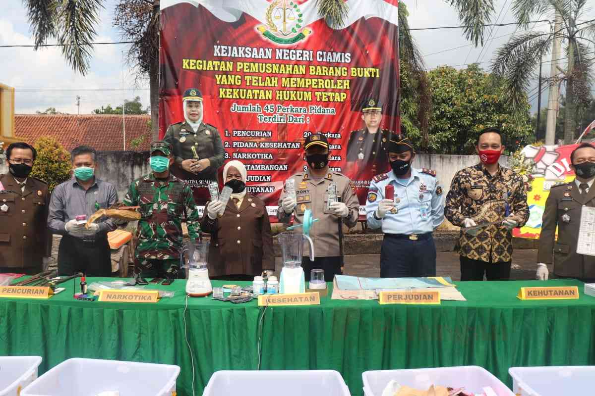 Menurut Kepala Kejaksaan Negeri Ciamis, Hj. Sri Respatini, SH., M.Hum., didampingi Kapolres Ciamis dan Dandim 0613/Ciamis, mengatakan barang bukti yang dimusnahkan merupakan BB awal tahun 2020 dari Januari hingga Juli 2020.