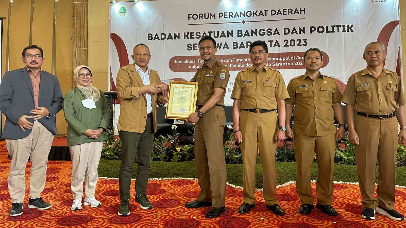Penghargaan diberikan langsung Sekretaris Daerah Jawa Barat Dr. Ir. Setiawan Wangsaatmaja, Dipl., S.E., M.Eng, Kepada Kepala Badan Kesbangpol Kabupaten Ciamis, R. Yadi Tisyadi, S.E., M.Si., di Novena Hotel, Kabupaten Bandung Barat. Selasa, (07/02/ 2023)