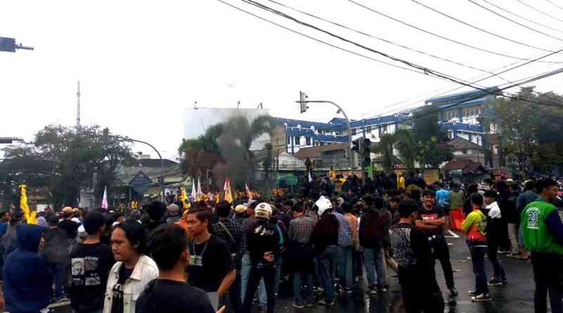 Aksi itu dilakukan massa, karena merasa kecewa dengan DPRD yang tak bisa menghadirkan 45 anggota wakil rakyat, saat mereka menyampaikan aspirasinya terkait penolakan kenaikan BBM.