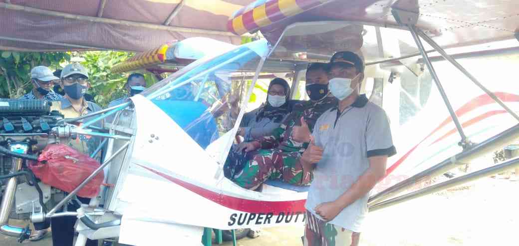 infopriangan.com, BERITA CIAMIS. Kepala pusat potensi dirgantara TNI Angkatan Udara, marsekal pertama (Marsma) TNI, Fajar Adriyanto kunjungi pesawat yang berhasil di buat oleh Heri, warga Dusun Nambo, Desa Cintajaya, Kecamatan Lakbok, Kabupaten Ciamis.
