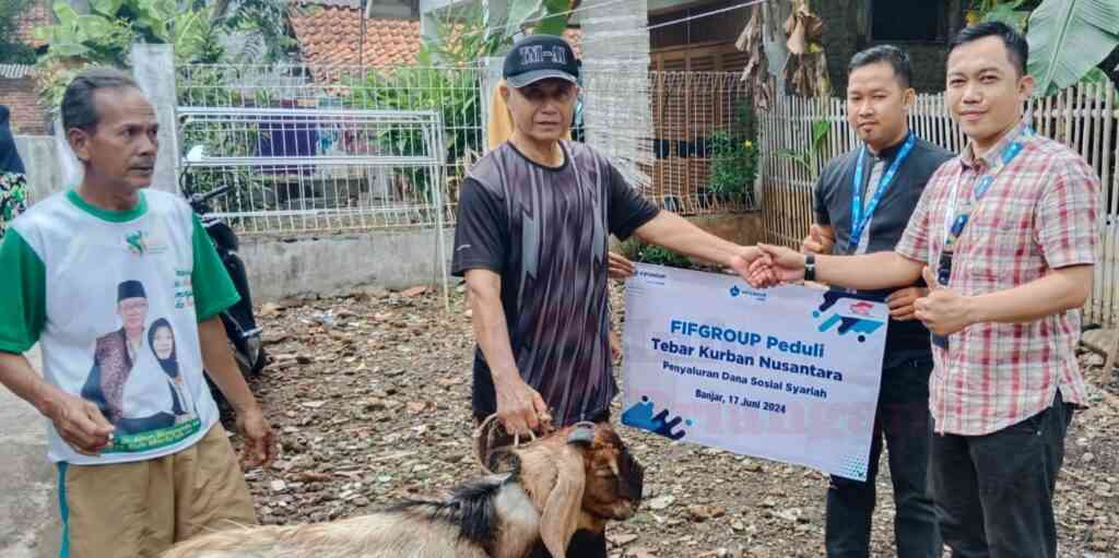 infopriangan.com, BERITA BANJAR. Semangat berbagi dan kepedulian kembali mewarnai momen istimewa Idul Adha 1445 H melalui program FIFGROUP Peduli Tebar Kurban Nusantara. PT Federal International Finance (FIFGROUP), anak perusahaan PT Astra International Tbk dan bagian dari Astra Financial, membagikan total 456 hewan kurban, terdiri dari tiga sapi dan 453 kambing, dengan nilai total Rp1,825 miliar. Dana ini berasal dari Dana Sosial Syariah FIFGROUP.