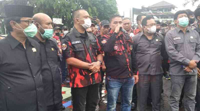 Aksi damai ormas Pemuda Pancasila akhirnya membubarkan diri setelah mendapat dukungan dari Ketua DPRD terkait pernyataan Junimar Ginsang tersebut. (Vie Irawan/IP)