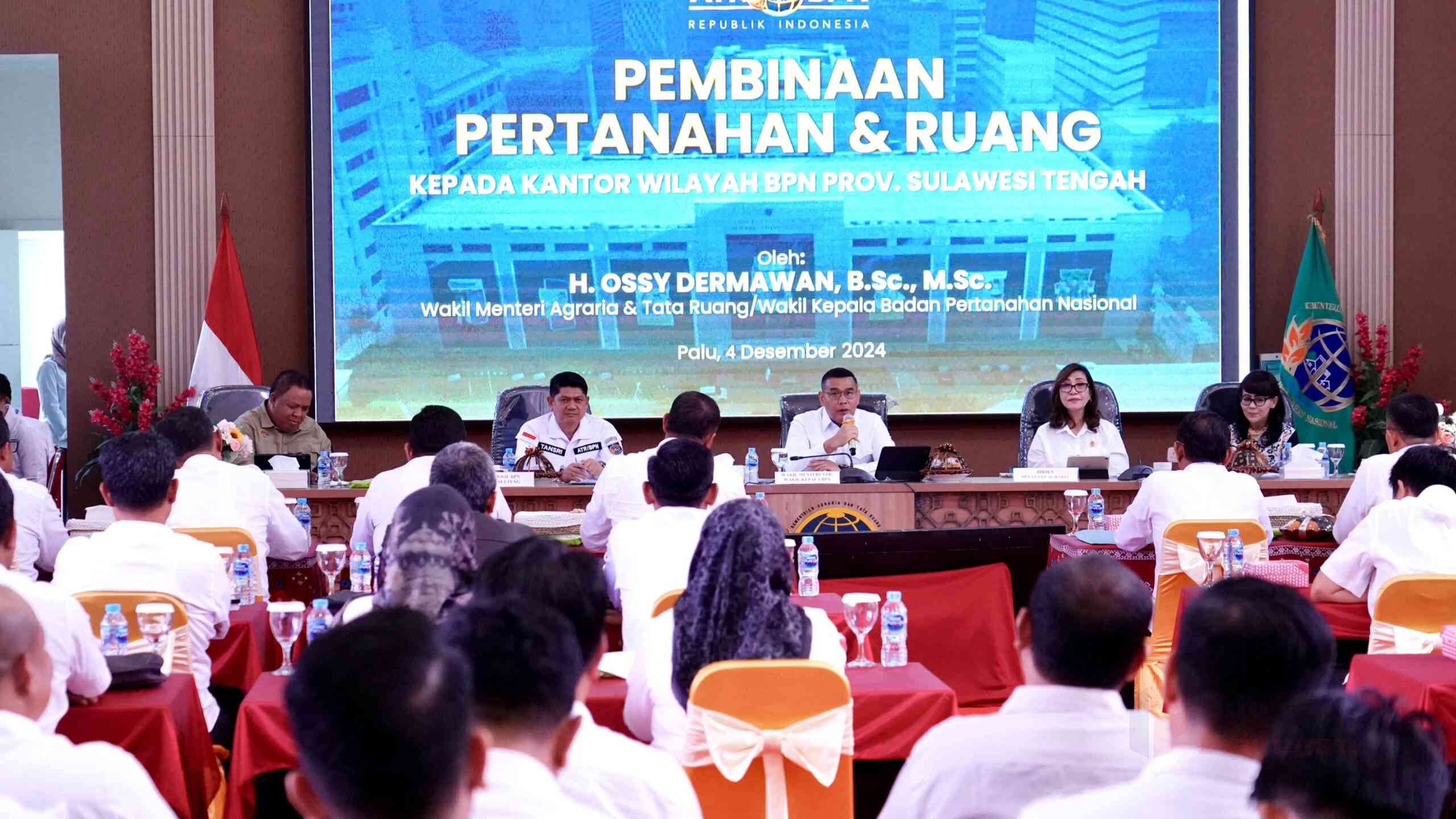 infopriangan.com, BERITA NASIONAL. Wakil Menteri Agraria dan Tata Ruang/Wakil Kepala Badan Pertanahan Nasional (Wamen ATR/Waka BPN), Ossy Dermawan, menyampaikan solusi strategis untuk mempercepat layanan publik di lingkungan Kementerian ATR/BPN. Hal ini disampaikan saat berkunjung ke Kantor Wilayah (Kanwil) BPN Provinsi Sulawesi Tengah (Sulteng), Kota Palu, pada Rabu (4/12/2024).