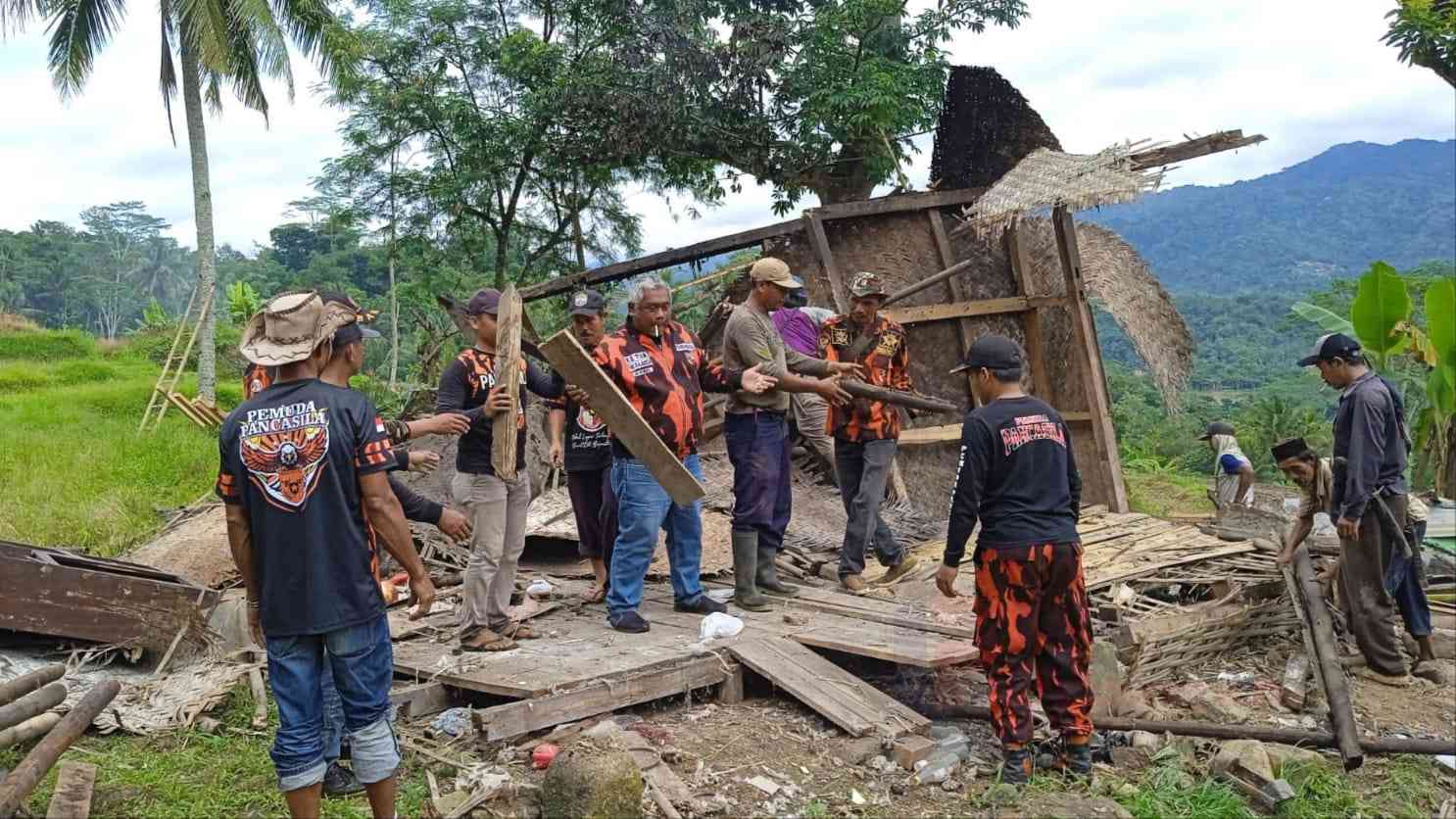 infopriangan.com, BERITA CIAMIS. Pasca viralnya rumah milik Sarsih warga Dusun Citapen Landeuh, RT 04 RW 03, Desa Sukajaya, Kecamatan Rajadesa, Kabupaten Ciamis, Jawa Barat, yang hampir ambruk, Ketua PAC Pemuda Pancasila, Kecamatan Rajadesa bersama anggota bergerak cepat.