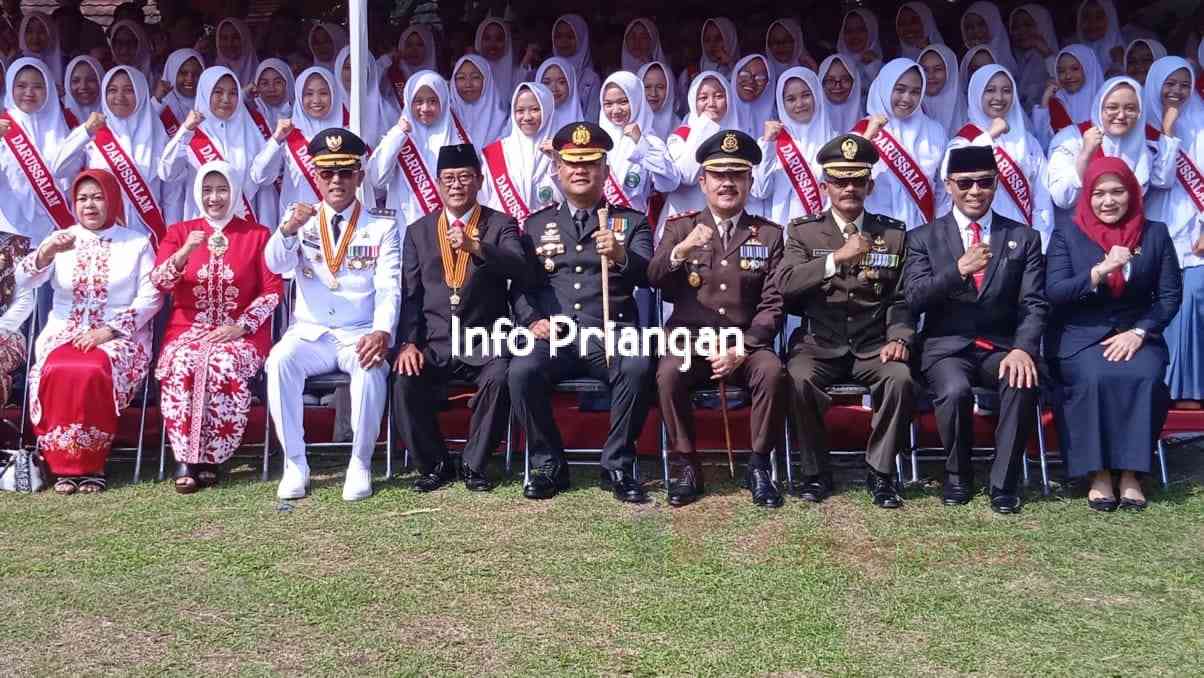 infopriangan.com, BERITA CIAMIS. Upacara peringatan Hari Ulang Tahun (HUT) ke-80 Kemerdekaan Republik Indonesia tingkat Kabupaten Ciamis di Taman Lokasana berlangsung khidmat dan meriah, Minggu (17/8/2025). Suasana semakin semarak berkat penampilan Paduan Suara Qadhisia dari SMA Plus Pondok Pesantren Darussalam.