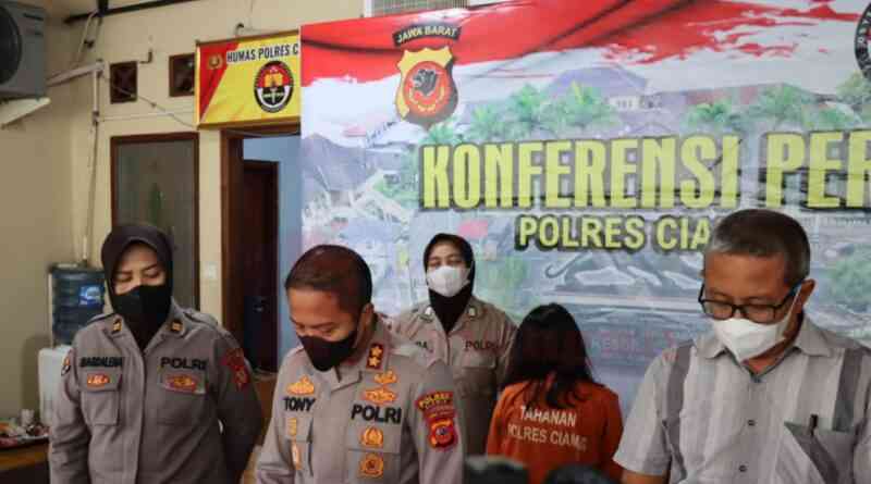 Kapolres Ciamis, AKBP Tony Prasetyo Yudhangkoro, SH., S.I.K., M.T., didampingi Kasi Humas Polres Ciamis, Iptu Magdalena NEB, dan KBO Reskrim Ipda Ateng, menjelaskan bahwa pelaku telah ditetapkan sebagai tersangka.