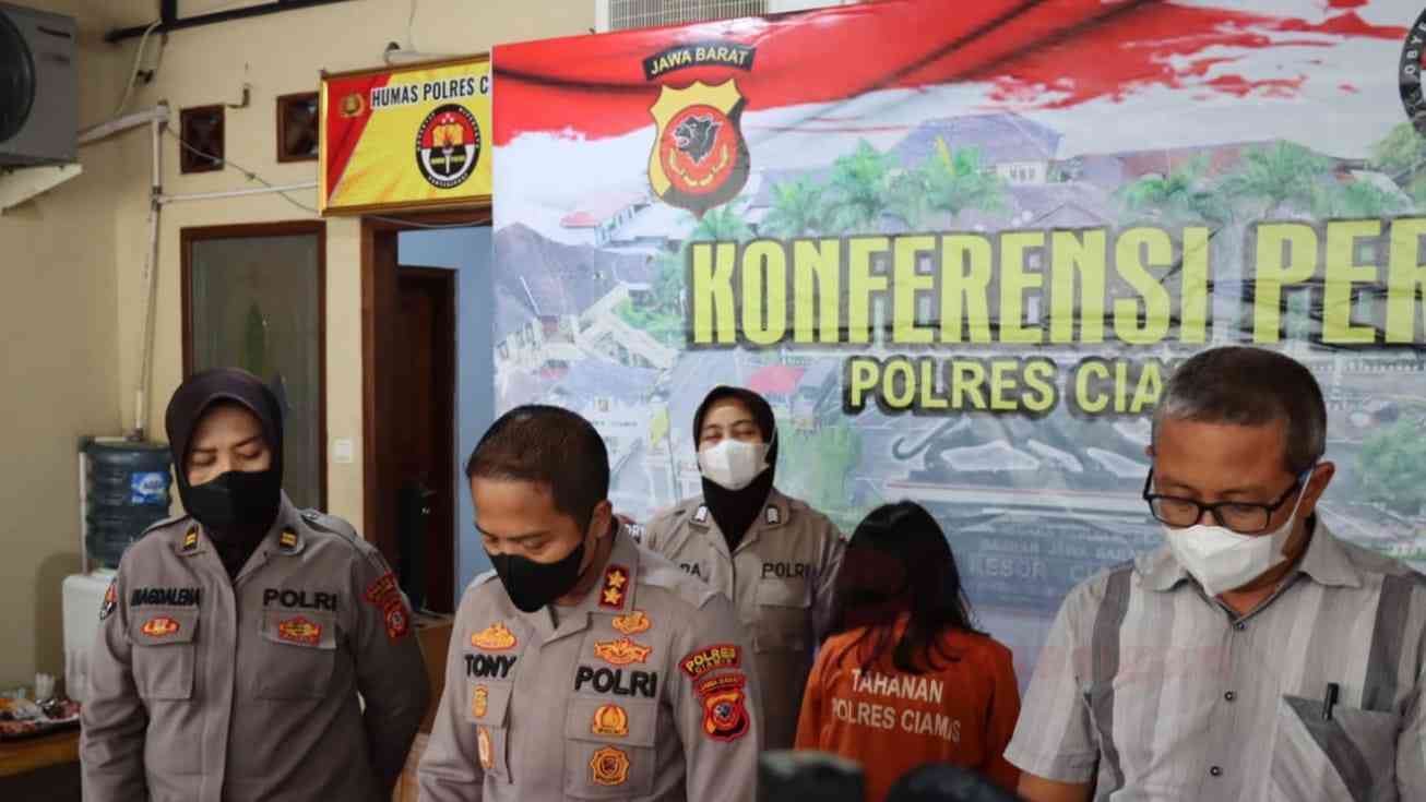 Kapolres Ciamis, AKBP Tony Prasetyo Yudhangkoro, SH., S.I.K., M.T., didampingi Kasi Humas Polres Ciamis, Iptu Magdalena NEB, dan KBO Reskrim Ipda Ateng, menjelaskan bahwa pelaku telah ditetapkan sebagai tersangka.