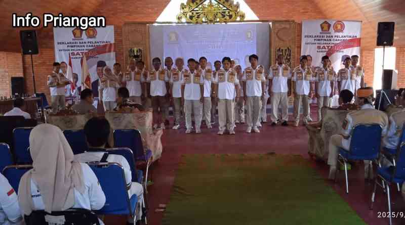 infopriangan.com, BERITA CIAMIS. Satuan Relawan Indonesia Raya (Satria) Kabupaten Ciamis resmi melaksanakan deklarasi dan pelantikan Pimpinan Cabang (PC) Sabtu 20/9/2025 di Pendopo wrtikandayun, Pusat Budaya Karangkamulyan pada acara yang berlangsung khidmat dan penuh semangat persatuan.