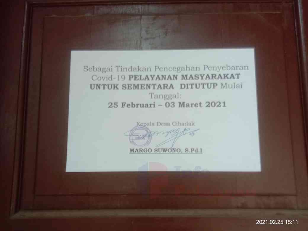 Pelayanan Kantor Desa Cibadak Ditutup Sementara