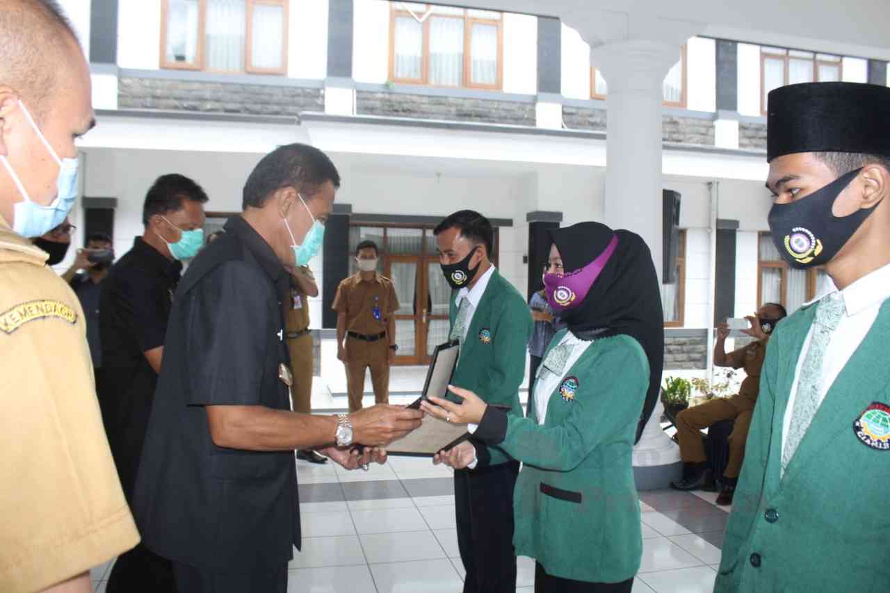 infopriangan.com, BERITA CIAMIS. Bupati Ciamis, Dr., H., Herdiat Sunarya, MM., menghadiri acara pelepasan peserta magang dari LPP Tridharma, bekerjasama dengan Badan Usaha Milik Desa (Bumdes) Kabupaten Ciamis. Acara bertempat di Pendopo Bupati Ciamis. Selasa, (13/10/2020).