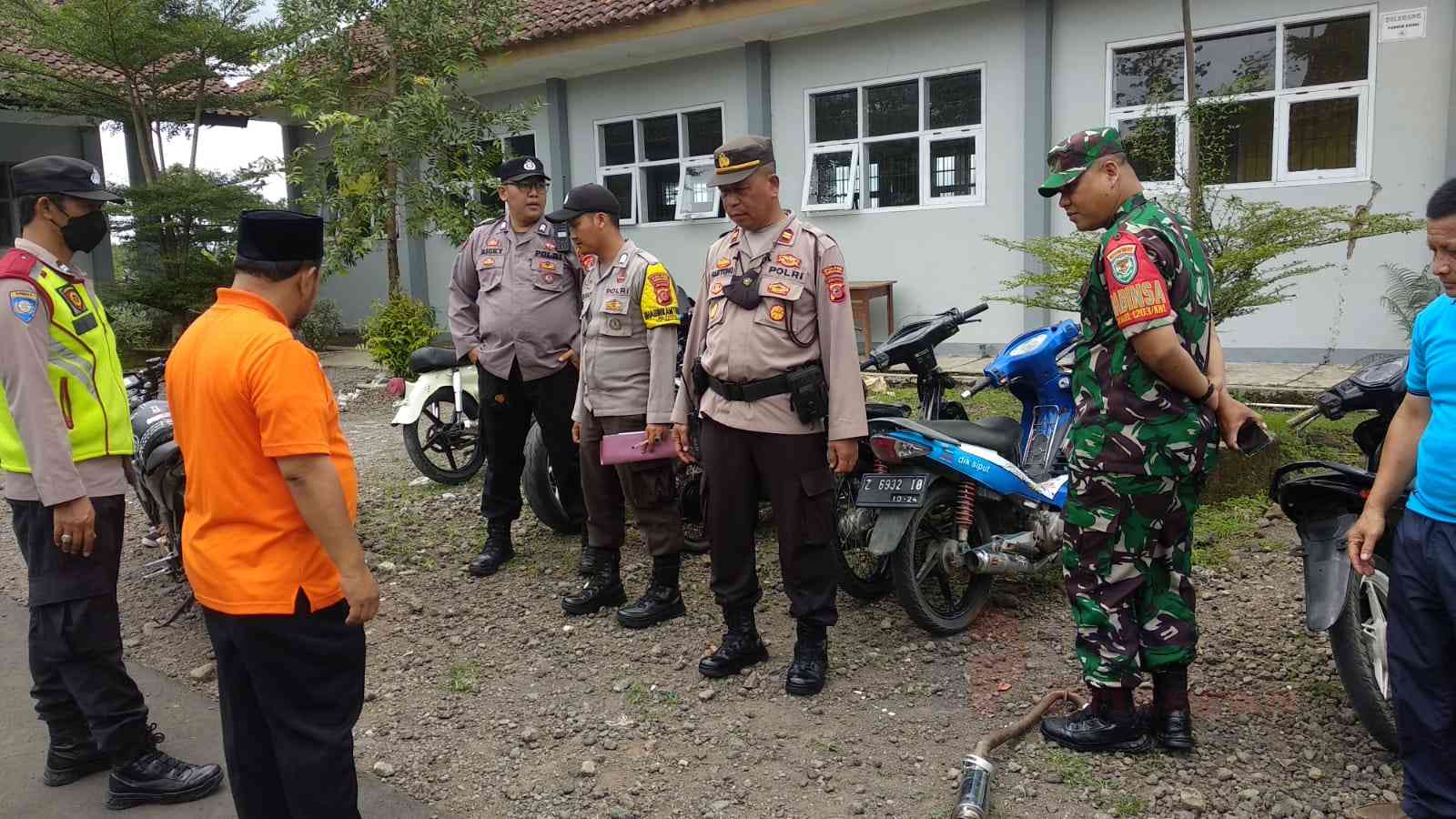 infopriangan.com, BERITA TASIKMALAYA. Jajaran Kepolisian Polsek Mangkubumi, Polres Tasikmalaya Kota dan Anggota Koramil menggelar penertiban knalpot bising kepada pelajar sekolah SMAN 10 Kota Tasikmalaya, Jawa Barat. Senin, (12/12/2022) siang.