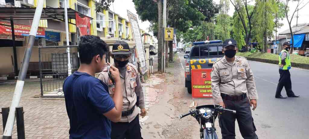 Operasi peningkatan pendisiplinan protokol kesehatan yang dilakukan Kepolisian Polsek Cibeurum Polresta Tasikmalaya dipimpin Kapolsek Cibeurum AKP Suyitno.