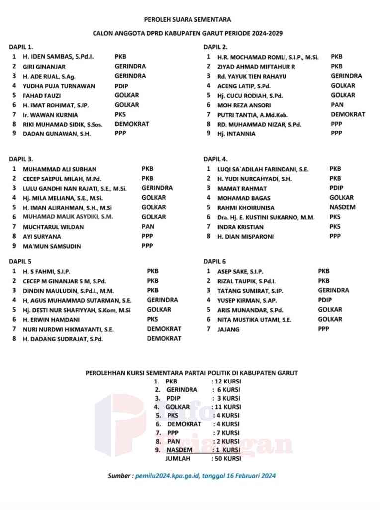 Sampai hari Sabtu 16/02/2024 pukul 9.00 WIB, ramai di medsos prediksi siapa saja yang bakal melenggang meraih kursi di DPRD Garut 5 tahun ke depan.