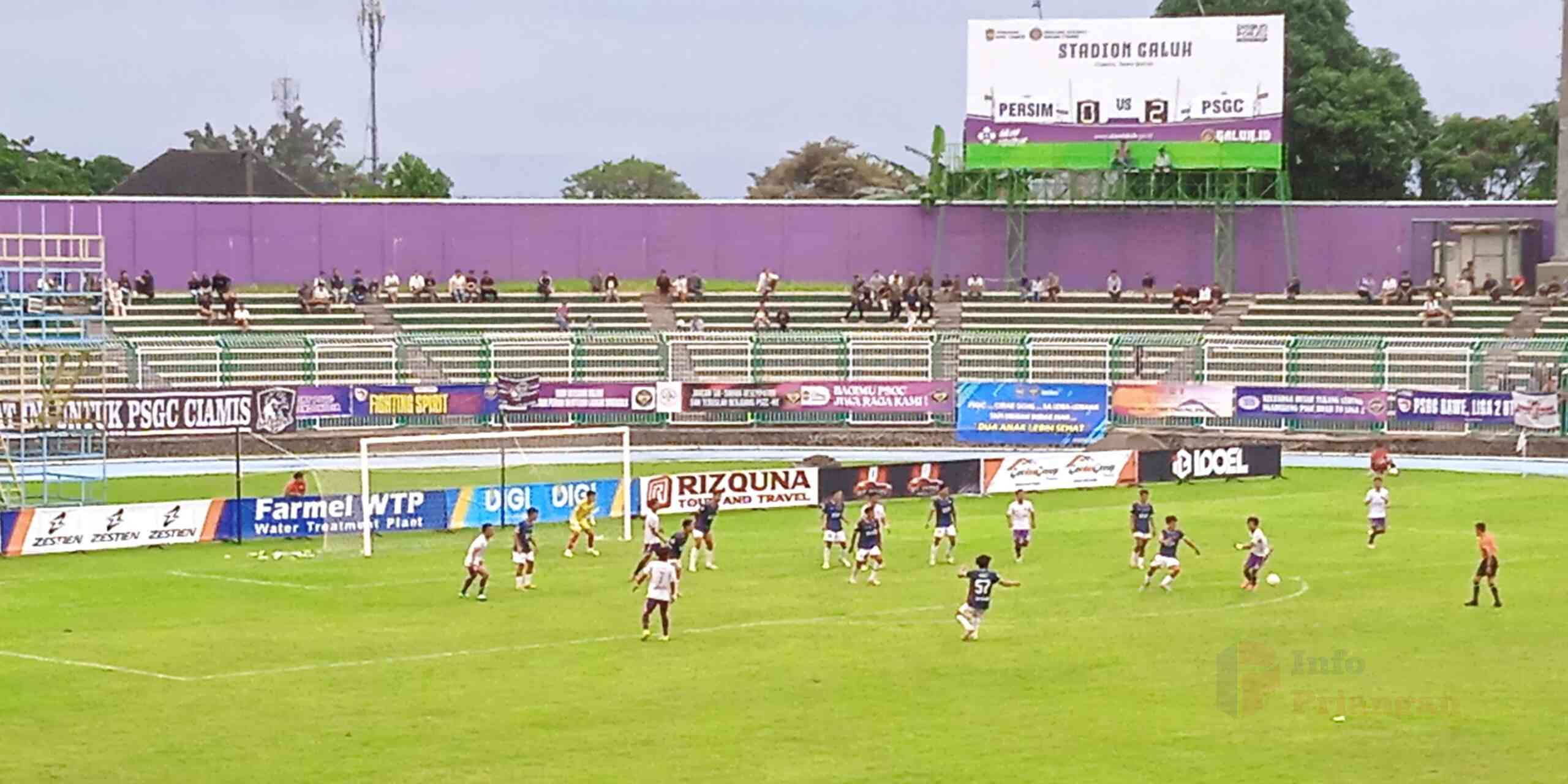 infopriangan.com, BERITA CIAMIS. Pertandingan laga kedua grup G Liga 3 Nasional PSGC Ciamis unggul 2-0 dari Persim Maros, hal itu tentunya berhasil merebut tiga point dari lawannya.