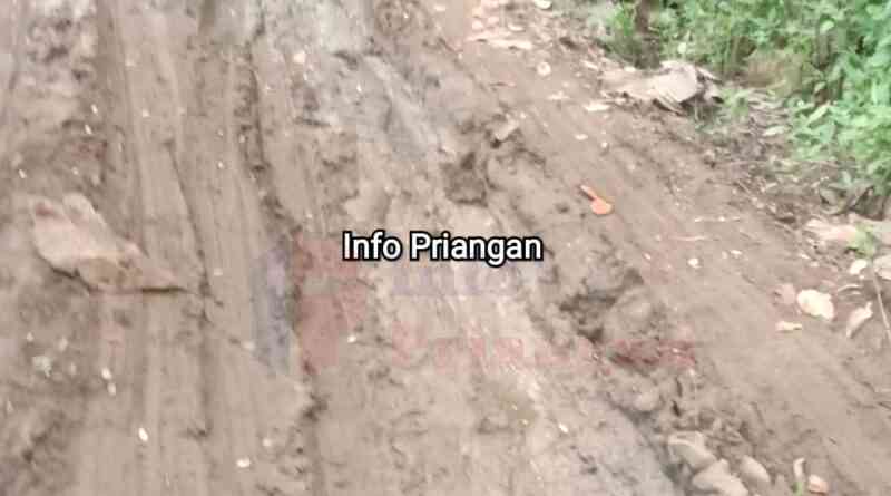 infopriangan.com, BERITA GARUT. Warga Kampung Bantar Caringin, Desa Cikondang, Kecamatan Cisompet, Kabupaten Garut, sudah puluhan tahun mengeluhkan kondisi jalan rusak parah yang menjadi satu-satunya akses ke kampung mereka. Jalan sepanjang dua kilometer tersebut belum pernah mendapatkan perbaikan berarti sejak pertama kali dibangun. Jalan itu sebagian berada di kawasan perkebunan milik BUMN dan sisanya dibangun secara swadaya oleh warga.