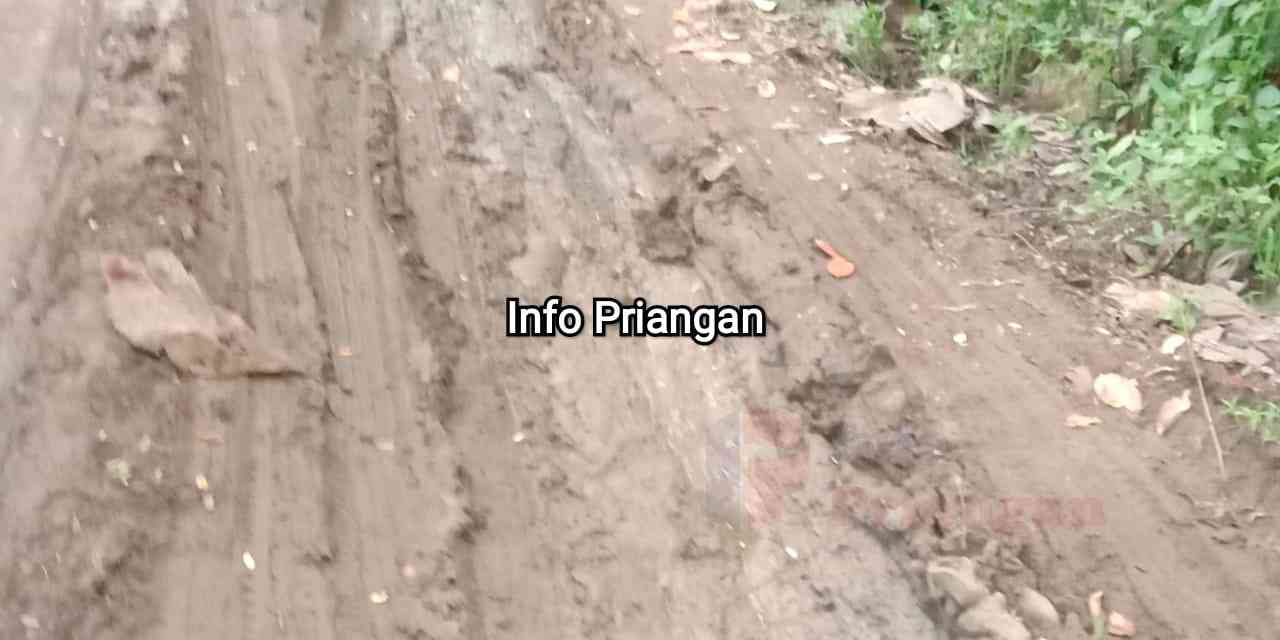 infopriangan.com, BERITA GARUT. Warga Kampung Bantar Caringin, Desa Cikondang, Kecamatan Cisompet, Kabupaten Garut, sudah puluhan tahun mengeluhkan kondisi jalan rusak parah yang menjadi satu-satunya akses ke kampung mereka. Jalan sepanjang dua kilometer tersebut belum pernah mendapatkan perbaikan berarti sejak pertama kali dibangun. Jalan itu sebagian berada di kawasan perkebunan milik BUMN dan sisanya dibangun secara swadaya oleh warga.