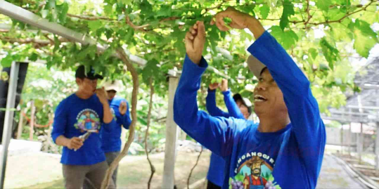 “Perjalanannya panjang dan tidak mudah. Sebelum BPN datang, panen pertama kami selalu gagal. Begitu hujan turun, semua anggur busuk. Tapi setelah BPN membantu kami memasang plastik UV untuk melindungi tanaman, hasilnya mulai terlihat. Sekarang panen bisa dua hingga tiga kali setahun,” tutur Saifuddin.