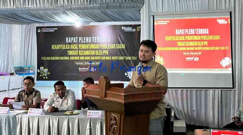 infopriangan.com, BERITA GARUT. Panitia Pemilihan Kecamatan (PPK) Cisompet, Kabupaten Garut, mengadakan sidang pleno rekapitulasi hasil Pilkada 2024 di GOR PGRI Cisompet.