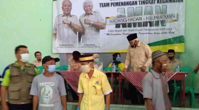 Sedangkan H. Adang Hadari selaku bakal calon Bupati yang didampingi bakal calon Wakil Bupati H Supratman mengatakan, terimakasih atas terbentuknya relawan aman. “Kami mengucapkan terimakasih kepada segenap panitia yang sudah mempasilitasi kegiatan ini. Sehingga kegitan ini berjalan mulus tanpa halangan apapun,” ucapnya.