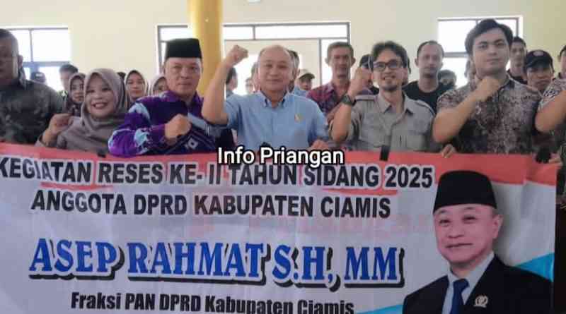 infopriangan.com, BERITA CIAMIS. Anggota DPRD Kabupaten Ciamis dari Fraksi PAN, Asep Rahmat, S.H., M.M., melaksanakan kegiatan Reses ke II Tahun Sidang 2025 di Desa Dewasari, Kabupaten Ciamis. Dalam kesempatan itu, ia menegaskan pentingnya membangun generasi unggul melalui pendidikan, kesehatan, serta pelestarian seni dan budaya. Kamis, (18/09/2025).
