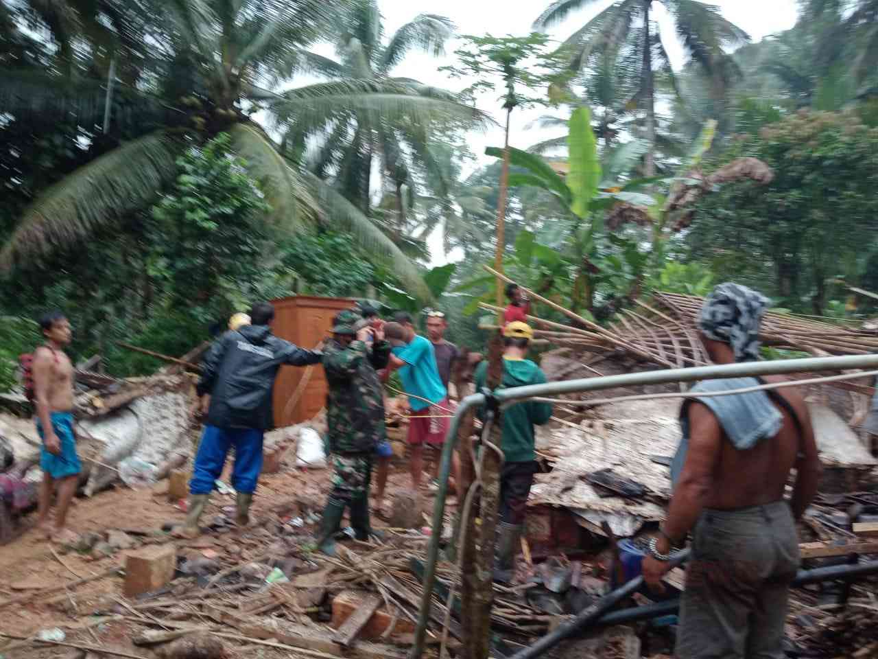 Dan untuk pembersihan puing-puing material rumah yang ambruk tersebut, dilakukan secara bergotong royong oleh warga sekitar, bersama pihak Desa, Babinsa, Bhabinkamtibmas, serta relawan Tagana.
