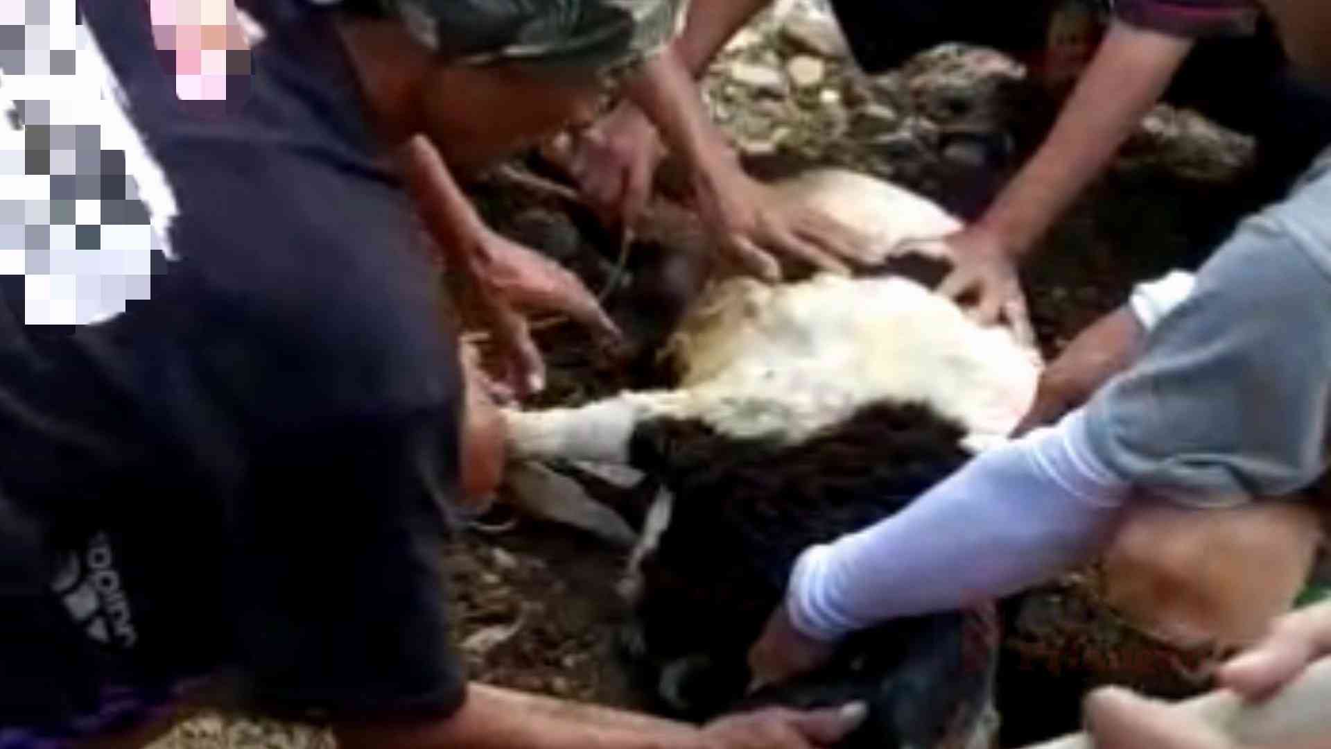 Ada dua hewan untuk kurban, yang pertama disembelih adalah sapi. Ketika itu, proses penyembelihan berlangsung nornal. Namun, ketika hendak menyembelih kambing yang kedua, korban yang memegang golok dan hendak memotong leher hewan kurban tiba-tiba jatuh pingsan.