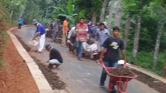 Warga Nagarajaya Bangun Bahu Jalan Sendiri