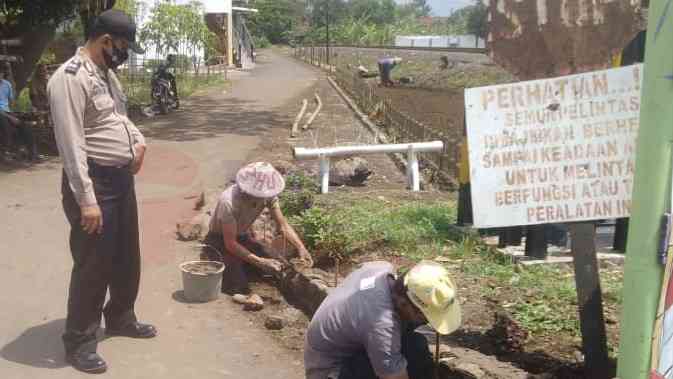 Polsek Jamanis dan Warga Perbaiki Jalan Ambles