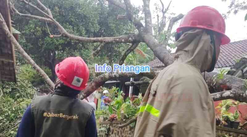 Baca Selengkapnyainfopriangan.com, BERITA CIAMIS. Pohon jati tumbang menutup akses jalan, dan menimpa rumah rumah warga di Dusun Pucak Asih, RT 15,