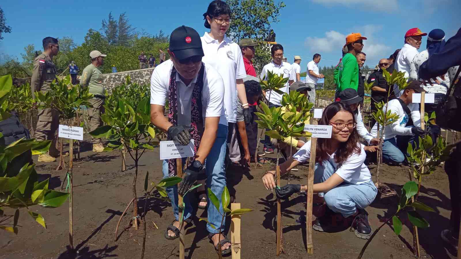 Empat Perusahaan ternama di Indonesia menanam 10 ribu pohon mangrove di pantai Pangandaran. Jumat, 18 Agustus 2023.