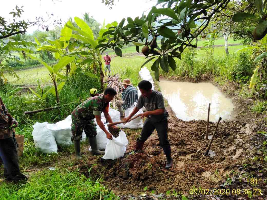 Warga Dibantu Babinsa Perbaiki Tanggul Jebol